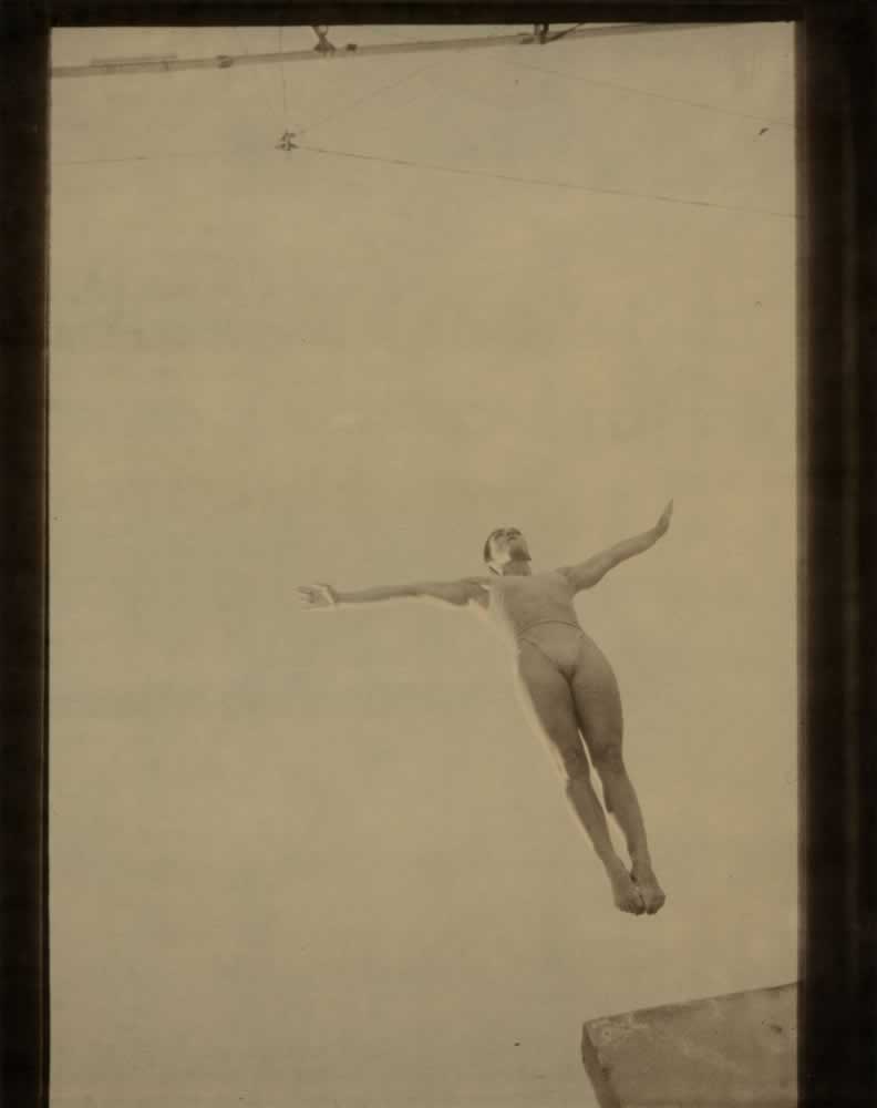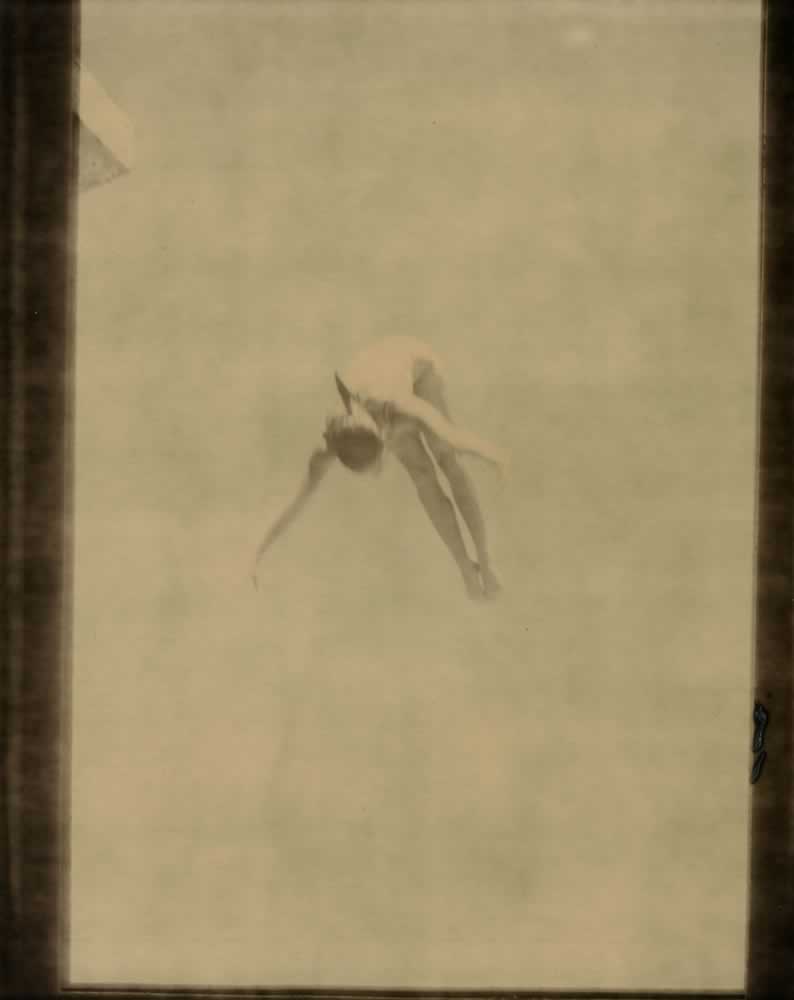 Olympic divers photographed at the Foro Italico olympic pool. 8x10 plate camera.Modern giclée prints from 8x10'' Polaroid, numbered edition on cotton paper.